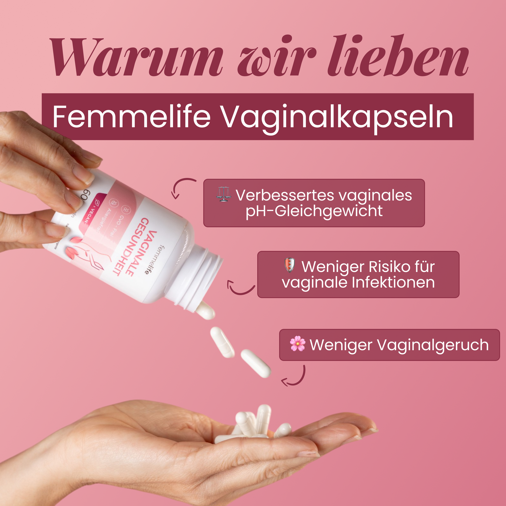 Femmelife wurde entwickelt, um das natürliche Gleichgewicht deiner Intimflora von innen heraus zu unterstützen.